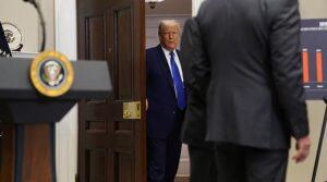 The president of the United States, Donald Trump, walks in the White House on the day of a press conference, in Washington, DC, USA, May 12, 2025….