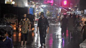 People make their way along a road while the heavy tabs of rawalpindi rain on June 22, 2025. – Online The heavy rains together with the…