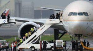 Passengers disembark in an Airlines aircraft in Saudi Arabia parked at the Ninoy Aquino International Airport in Pasay City, Metro Manila,…