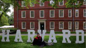 The graduate student Jordan Strasser poses for a photograph before the class exercises, part of the 374th beginning of Harvard University, in…