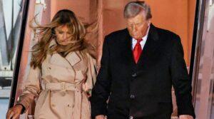 The president of the United States, Donald Trump, and the First Lady Melania Trump, disembark to Air Force One when they arrive for their state visit…