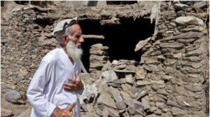 An old farmer passes through a damaged house after a mortal earthquake that hit the provinces of Kunar and Nangarhar de Afghanistan, in the masud…