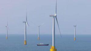 A ship navigates between wind turbines in the Taiwan Strait off the coast of the island of Pingtan, Fujian province, China, April 10, 2023. –…