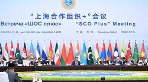 The officials attend a meeting in the SCO Plus format at the Shanghai Cooperation Organization Summit in Tianjin, China, September 1, 2025. –…