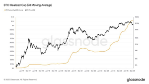Bitcoin’s “realized capitalization” is at an all-time high of $1.125 trillion, suggesting BTC remains in a bull market despite the…