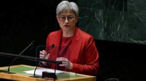 Australia’s Commonwealth Foreign Minister Penny Wong addresses the 79th United Nations General Assembly at UN headquarters in New York, US, on…