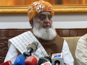Jamiat Ulema-i-Islam-F chief Maulana Fazlur Rehman addresses a press conference in Peshawar on Saturday. Photo: screenshot MARDAN: JUI-F chief…