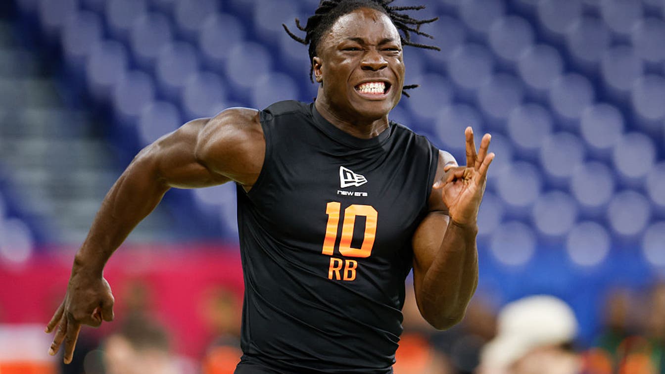Emmett Johnson had the fourth-highest production score of all running backs at the 2026 NFL Combine. (Photo by Lauren Leigh Bacho/Getty Images)