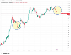 BTC-gold ratio nears 2019-style turning point after six red candles Read More »