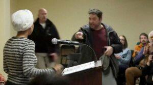 A man shouts at us. Rep. Ilhan Omar (D-MN) after spraying her, during a town hall meeting days after a man identified as Alex Pretti was shot and…