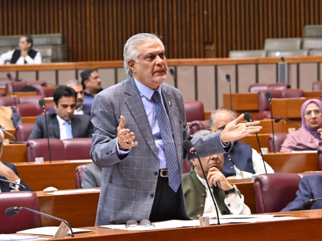 Deputy Prime Minister and Foreign Minister Ishaq Dar addresses the National Assembly session. Photo: Facebook/Archive