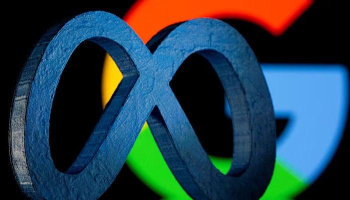 In this illustration taken on November 2, 2021, a 3D-printed metalogo is seen in front of the displayed Google logo. – Reuters
