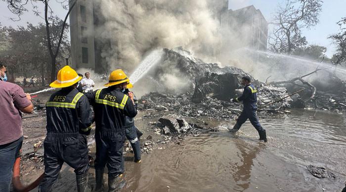 Rescue team members work as smoke increases at the site where an Air India plane crashed in Ahmedabad, India, June 12, 2025. – Reuters