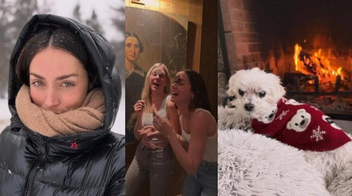In one image, Ana was bundled up in a cozy parka and scarf while having fun in the cold weather.