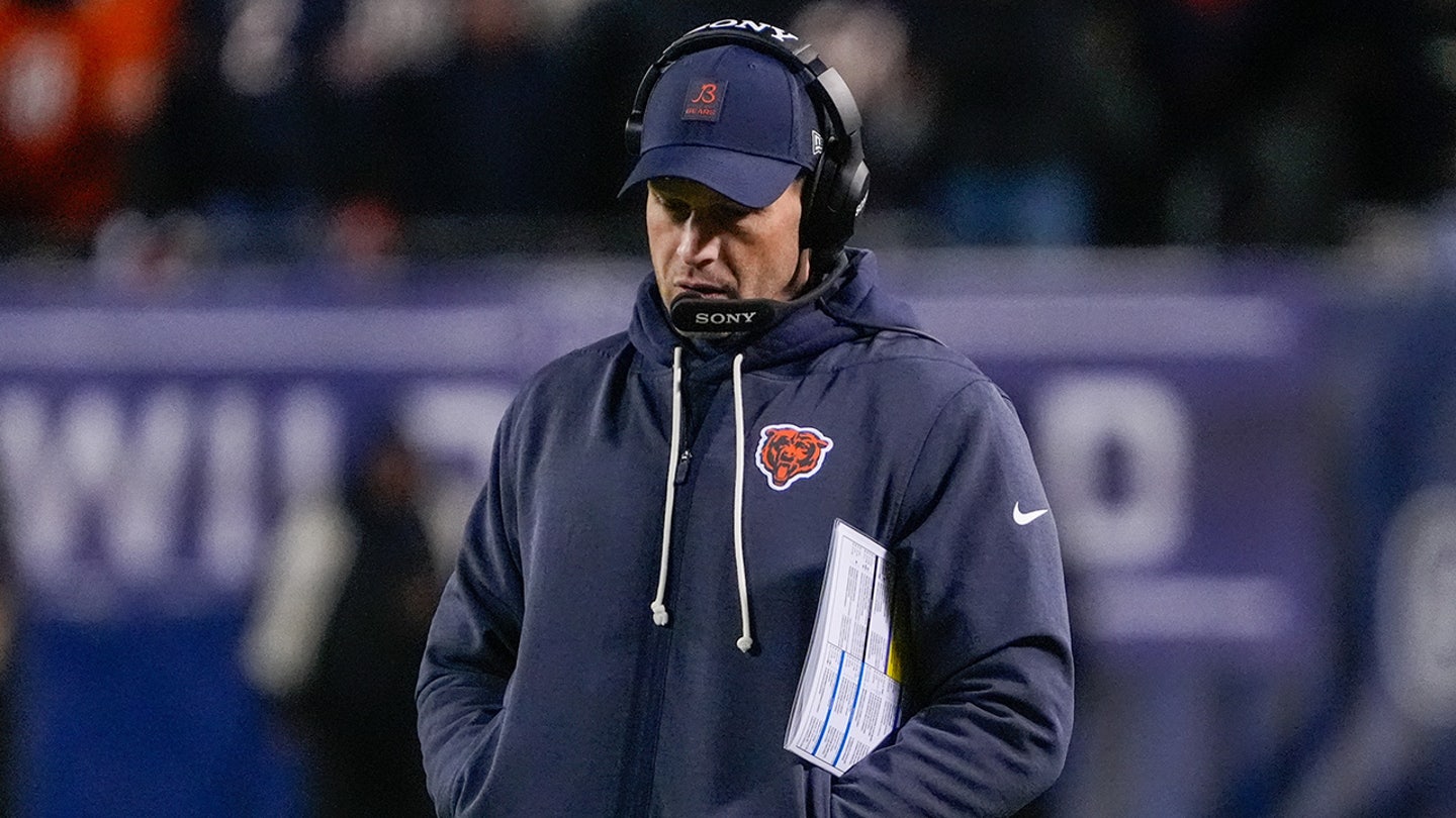 Chicago Bears head coach Ben Johnson stands on the sideline against the Green Bay Packers during the first half of an NFC Wild Card Round game at Soldier Field on Jan. 10, 2026. (David Banks/Image Images)