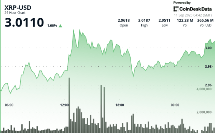 XRP pierced the psychological threshold of $ 3.00 in a heavy volume session that indicated strong institutional flows.
