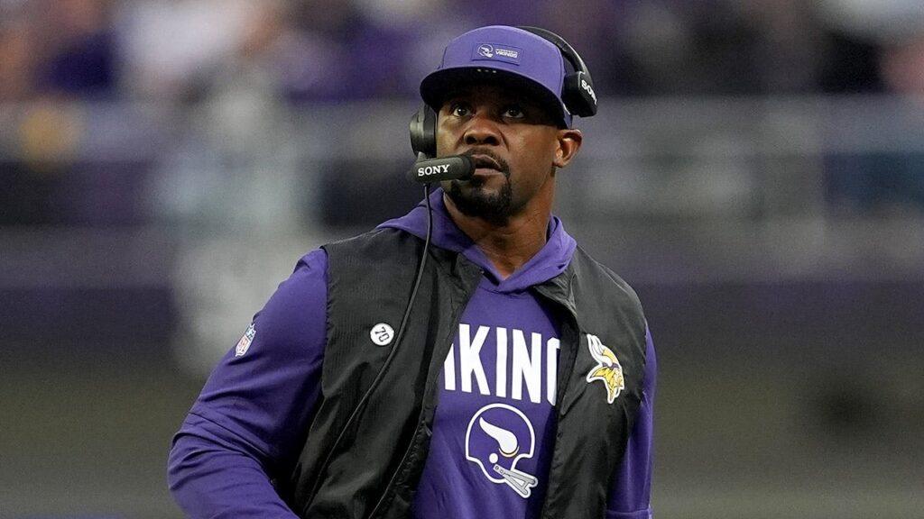 Minnesota Vikings defensive coordinator Brian Flores during a game against the Seattle Seahawks at Lumen Field in Seattle on Nov. 30, 2025. (Steph Chambers/Getty Images)
