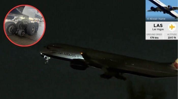 The incident in which the right rear wheel detached from the Airbus A350-1000 was recorded on video as flight BA274 took off from Harry Reid International Airport.