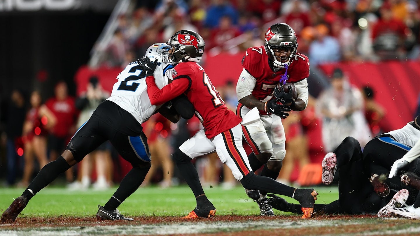 Carolina’s hope of clinching that title Saturday ended when Baker Mayfield threw a touchdown pass to Cade Otton and Chase McLaughlin kicked three field goals to earn the two-point victory, leaving the Panthers with almost no time to win the game on the final drive.