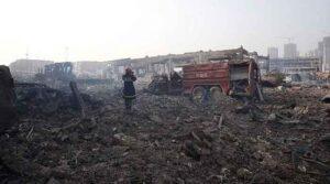 A representative image showing a firefighter that records the consequences on the explosions site in Tianjin on August 15, 2015. – AFP…