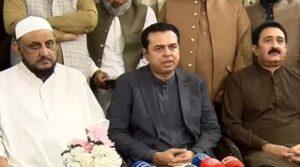 Minister of State for Home Affairs Talal Chaudhry (centre) addresses the press conference in Faisalabad on November 16, 2025. – Screenshot via…