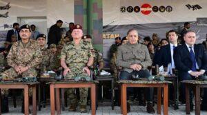 Jordanian King Abdullah II witnesses a joint shooting and maneuver exercise at the Tilla shooting range. Also present are Prime Minister Shehbaz…