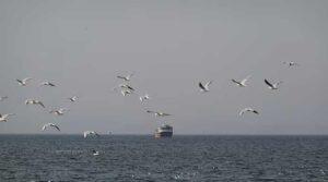 Birds fly near a ship in the Strait of Hormuz amid the US-Israel conflict with Iran, seen from Musandam, Oman, on March 2, 2026.— Reuters/File From…