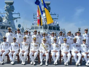 Chief of Naval Staff says country’s strategic location on key maritime trade and energy routes drives Navy modernization Photo of naval members…