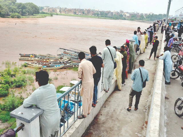 In Khanki, the river is in an extremely high flood situation with flows that reach 859,000 CUSECs. Similarly, in the head of Qadirabad, the discharge has increased to 996,000 Cusecs, almost 200,000 Cusecs above its design capacity, also classified as an extremely high level of flooding.