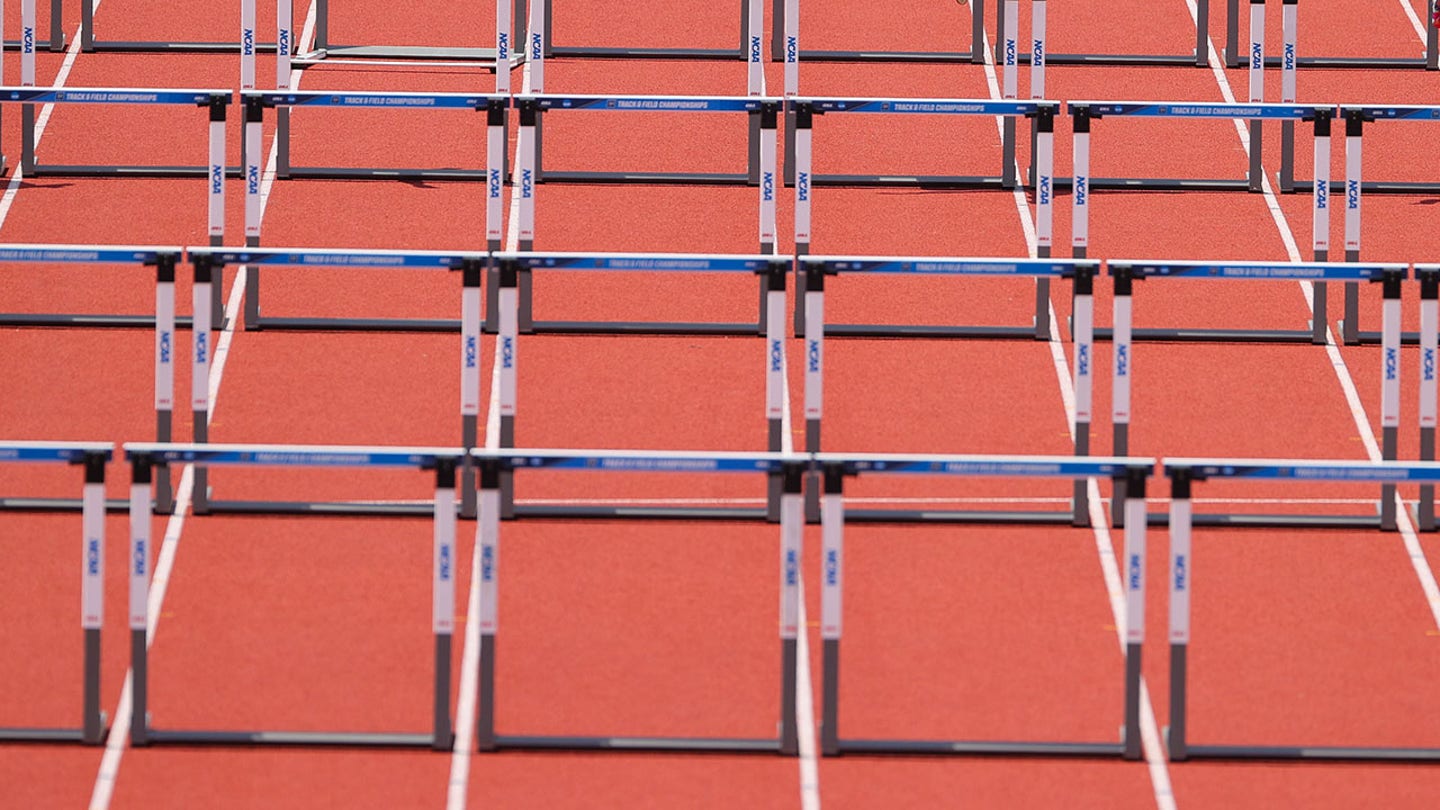 General view of hurdles at a Track & Field event. (Photos by C. Morgan Engel/NCAA via Getty Images)