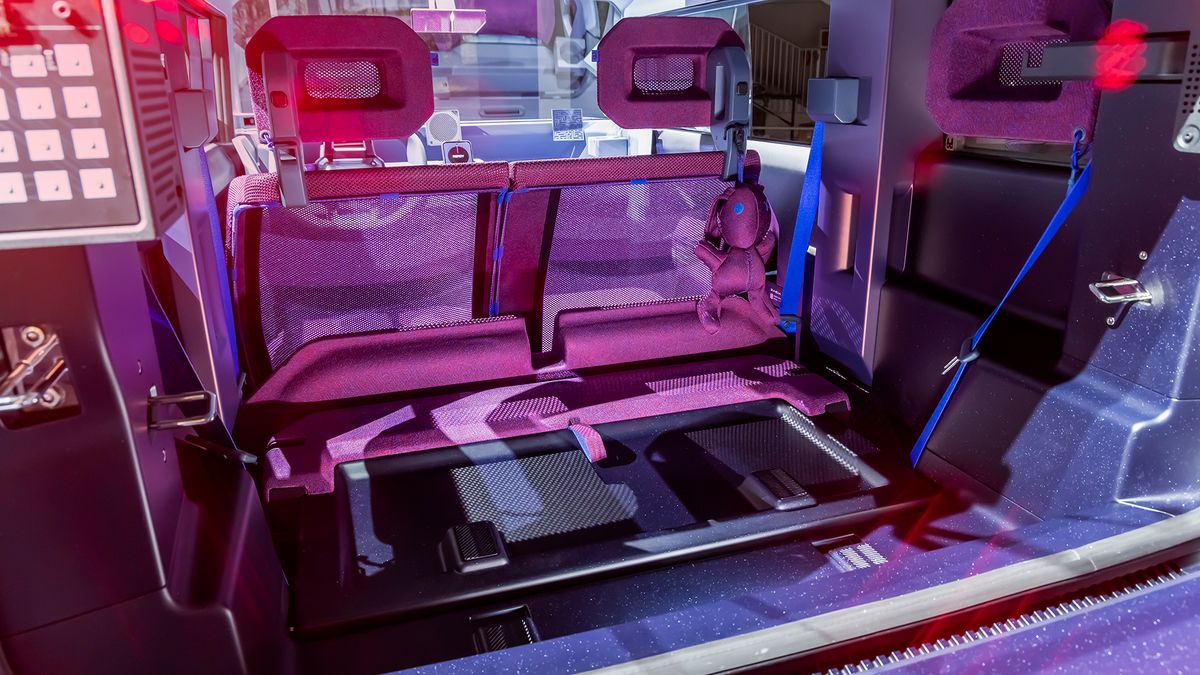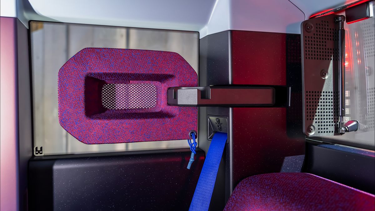 Inside, the seats abandon the usual cushioning and covers for a light frame that is covered with a surprisingly comfortable mesh fabric. “Like those office chairs,” says Durand.