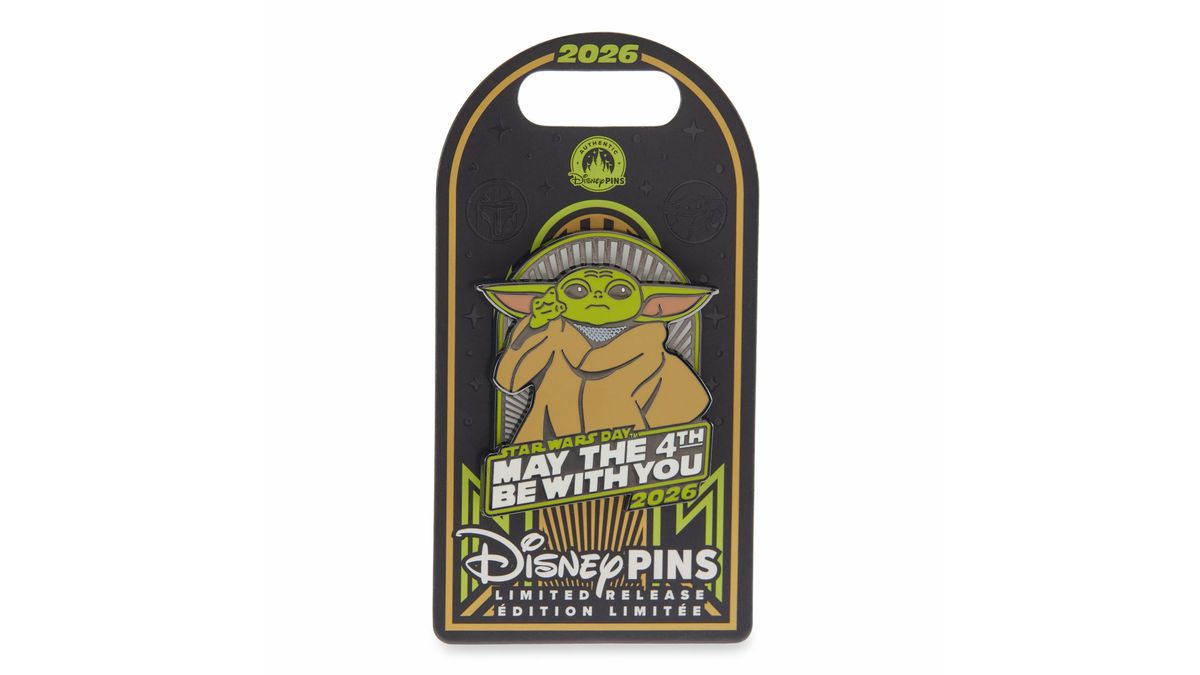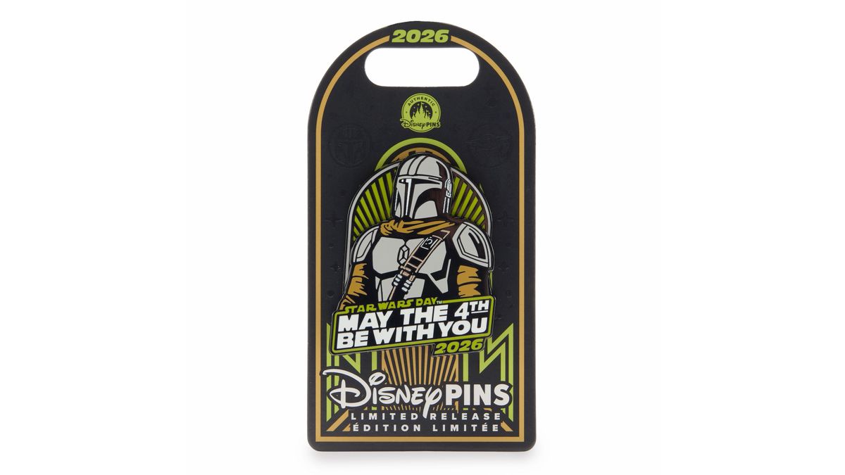 Pin collectors will be happy to know that the Disney Store has a set of three on the way. The first two sell for $21.99 and are themed around one character each. A Din Djarin Pin and a Grogu Pin arrive as limited releases with the “Star Wars Day: May the 4th Be With You 2026” logo. The Mandalorian stands in an iconic pose, as Grogu uses the Force.