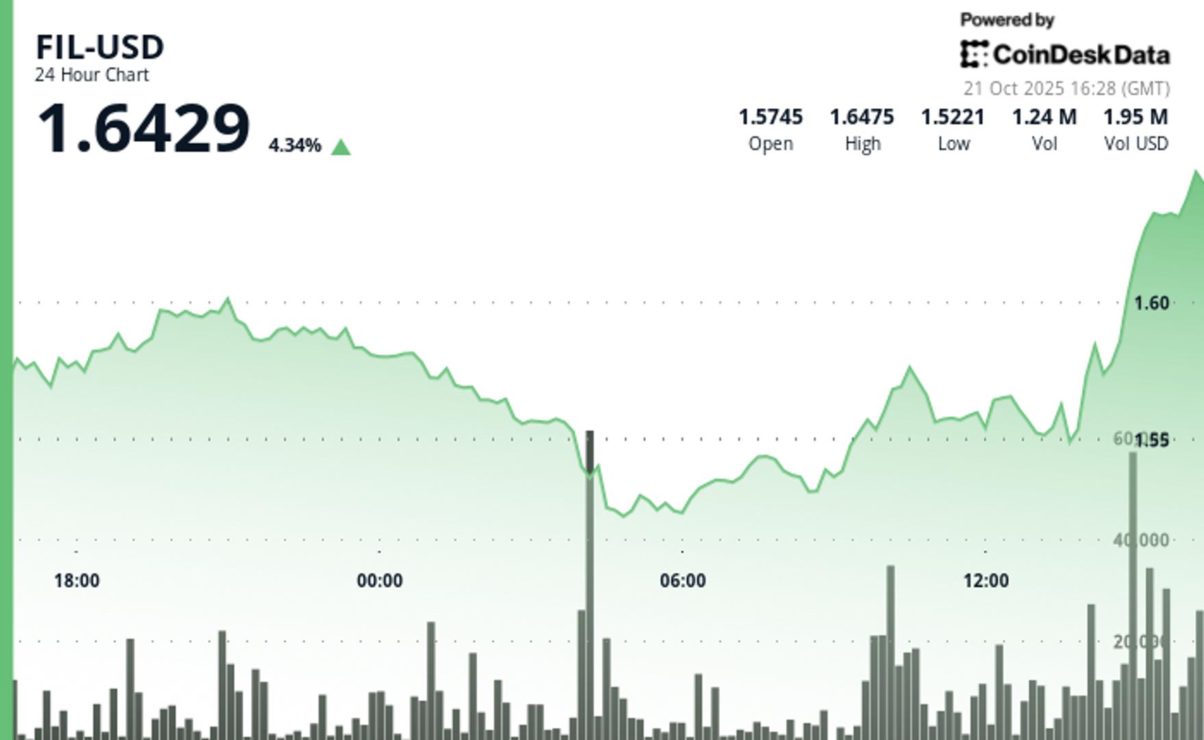 In recent trading, FIL was up 4.4% in 24 hours, around $1.65.