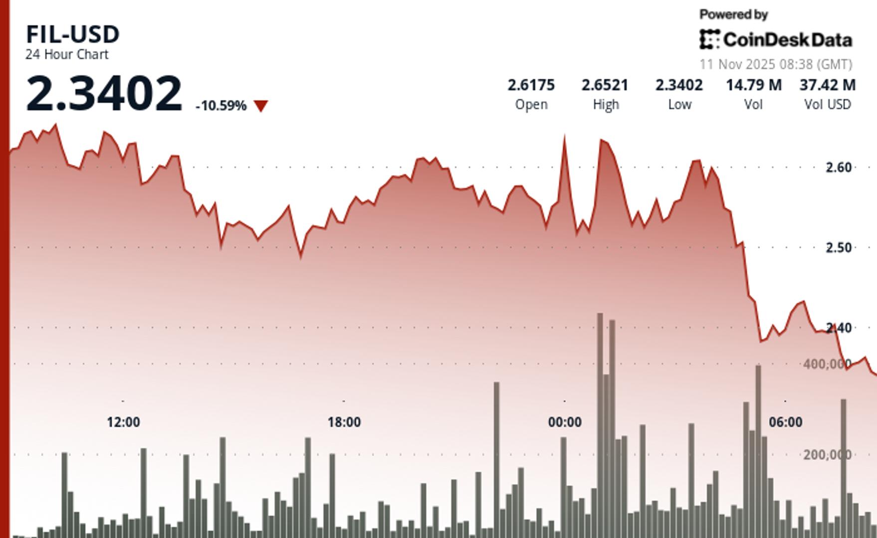 FIL broke key support at $2.50 and $2.40 as institutional-sized orders triggered a stop loss cascade, according to the model.