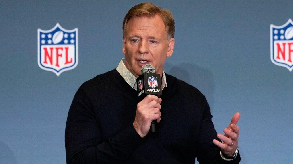 NFL Commissioner Roger Goodell speaks during his State of the NFL press conference on February 2, 2026 in San Jose, California. (AP Photo/Matt York)