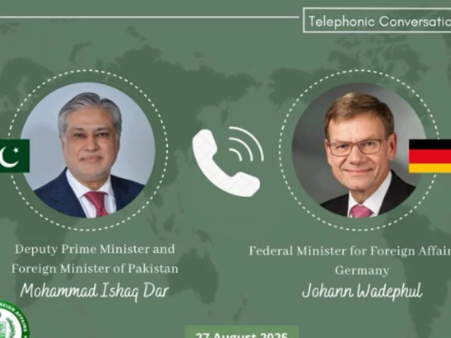The Deputy Prime Minister and Minister of Foreign Affairs, Ishaq Dar, received a telephone call on Wednesday night from the German Foreign Minister, Dr. Johann Wadephul, the Ministry of Foreign Affairs said Thursday.