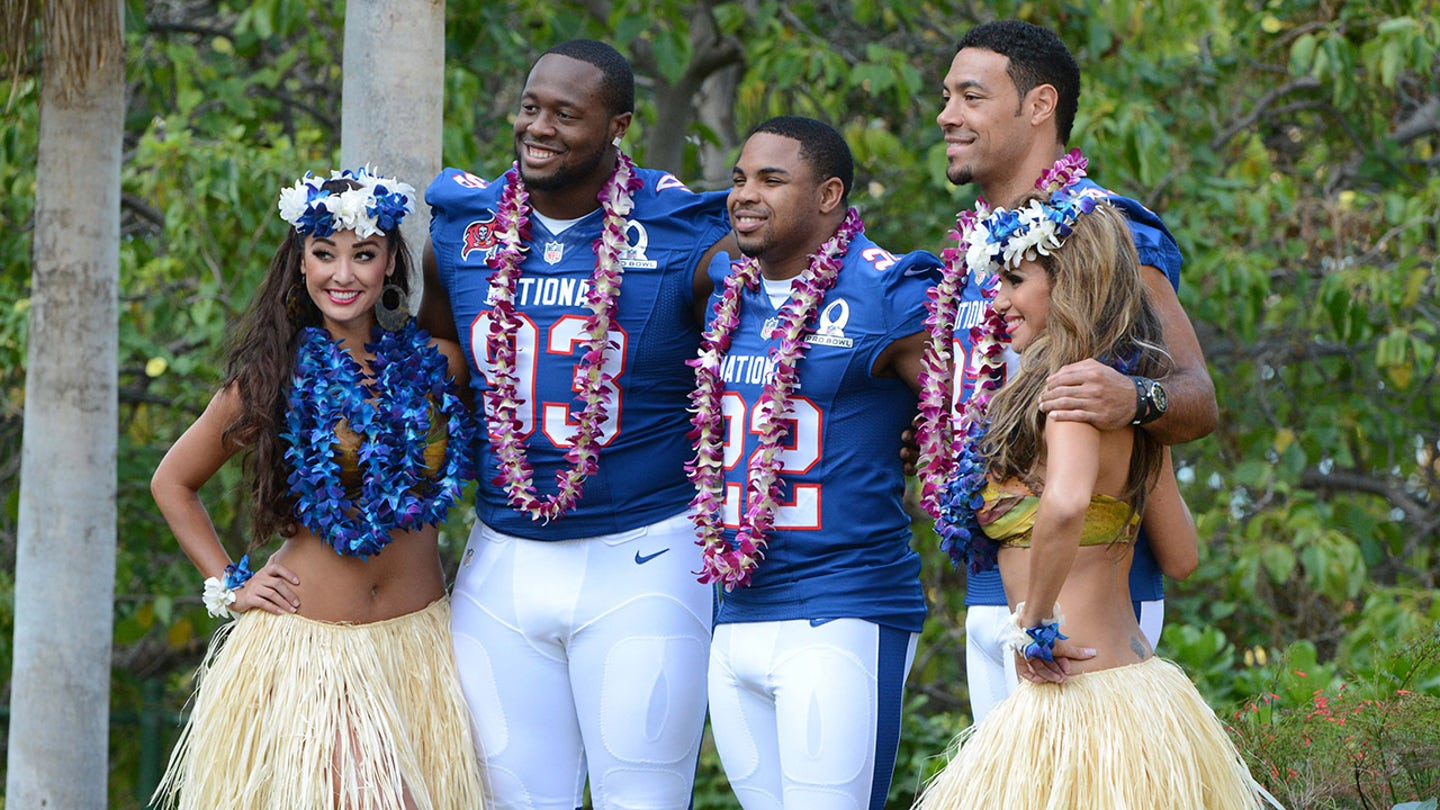 Tampa Bay Buccaneers defensive tackle Gerald McCoy (93), running back Doug Martin (22) and receiver Vincent Jackson (83) pose for a photo at the NFC media day for the 2013 Pro Bowl at the JW Marriott Ihilani Resort on January 25, 2013 in Ko Olina, Hawaii. (Kyle Terada/USA TODAY Sports)