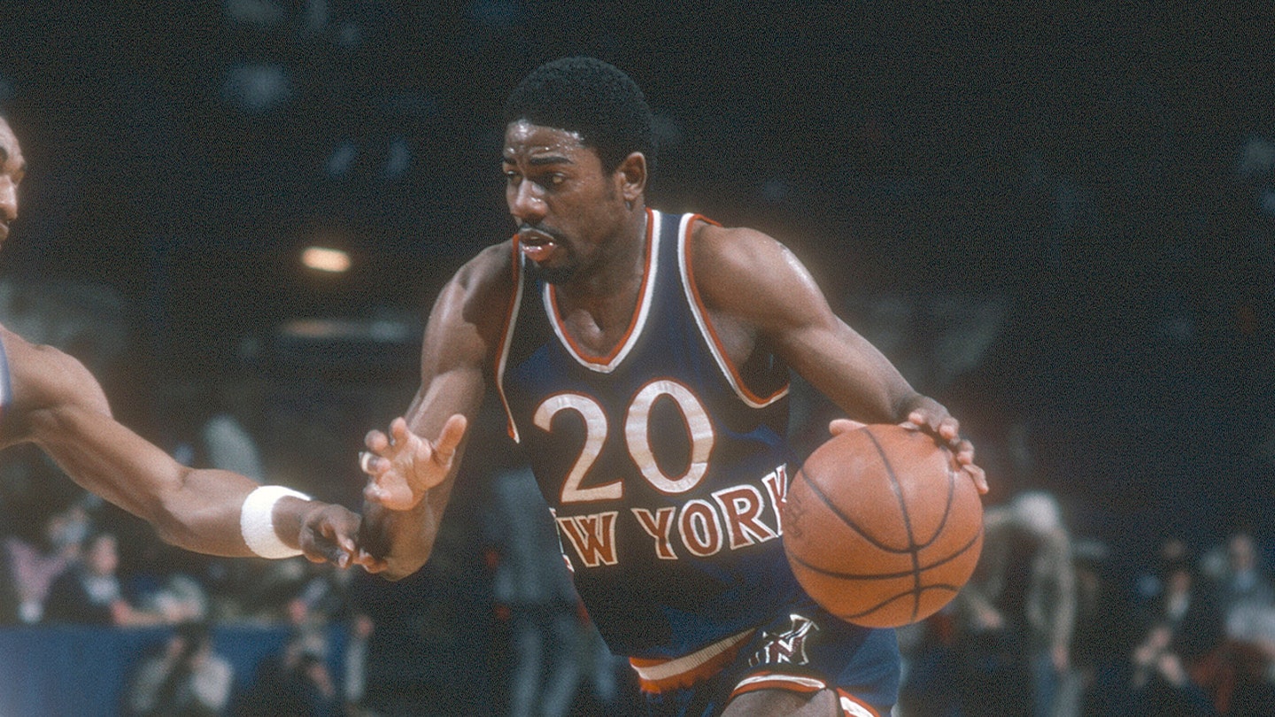 Michael Ray Richardson of the New York Knicks dribbles the ball against the New Jersey Nets during an NBA basketball game circa 1979 at Madison Square Garden. (Focus on sport/Getty Images)