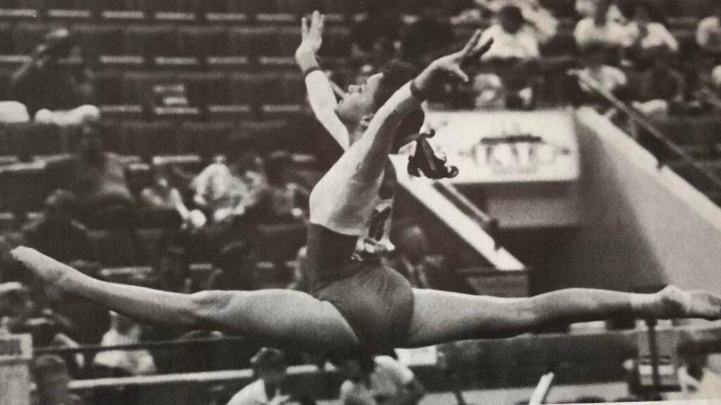 Jennifer Sey, 1986 US national all-around gymnastics champion, performs a split vault during competition. (XX-XY Athletics/Jennifer Sey)