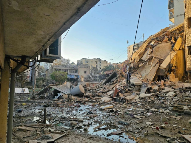 Debris and rubble are scattered along a road at the site of an Israeli airstrike that targeted the southern suburbs of Beirut, in the al Kafaat neighborhood, on March 17, 2026. PHOTO: AFP