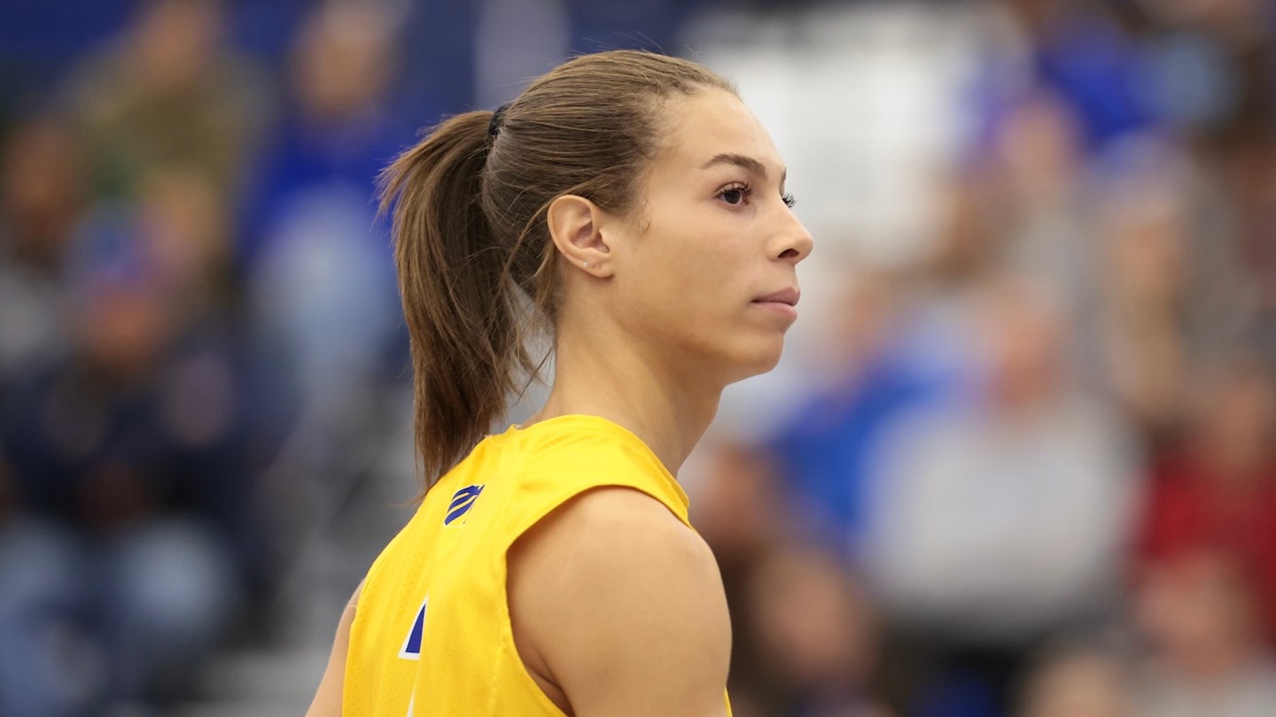 Blaire Fleming of the Spartans of the State of San José observes during the second set against the Falcons of the Air Force in Falcon Court in East Gym on October 19, 2024 in Colorado Springs, Colorado. (Andrew Wevers/Getty Images)