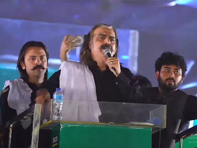 Gandapur strength protests outside the stage