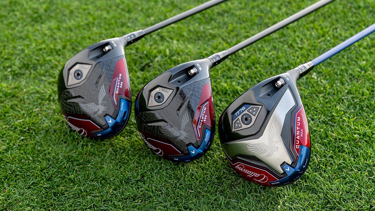 New Callaway USA 250 drivers, part of their limited edition collection, lying on the ground on a golf course. (Courtesy of Callaway)