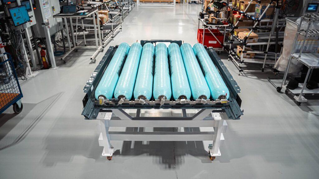 So much so that its engineers have come up with a novel way of packaging the system so that seven 700-bar high-pressure hydrogen tanks sit flat next to each other and form part of the powertrain.
