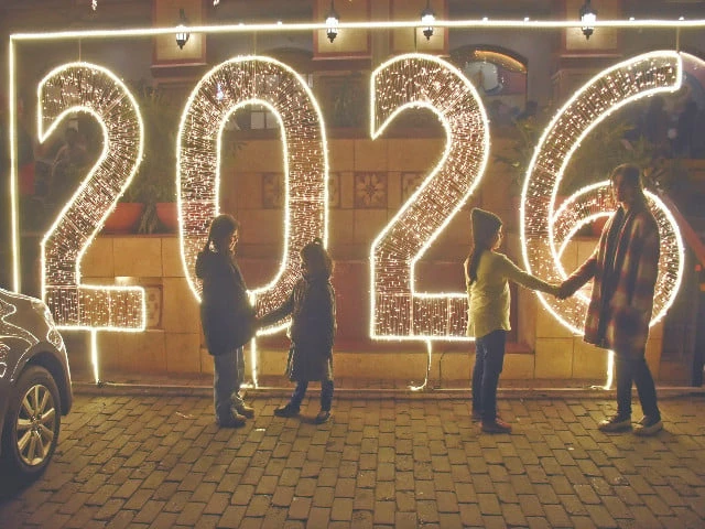 Children pose in front of a beautifully illuminated wall adorned with bright lights in celebration of the New Year in the federal capital. photo: online