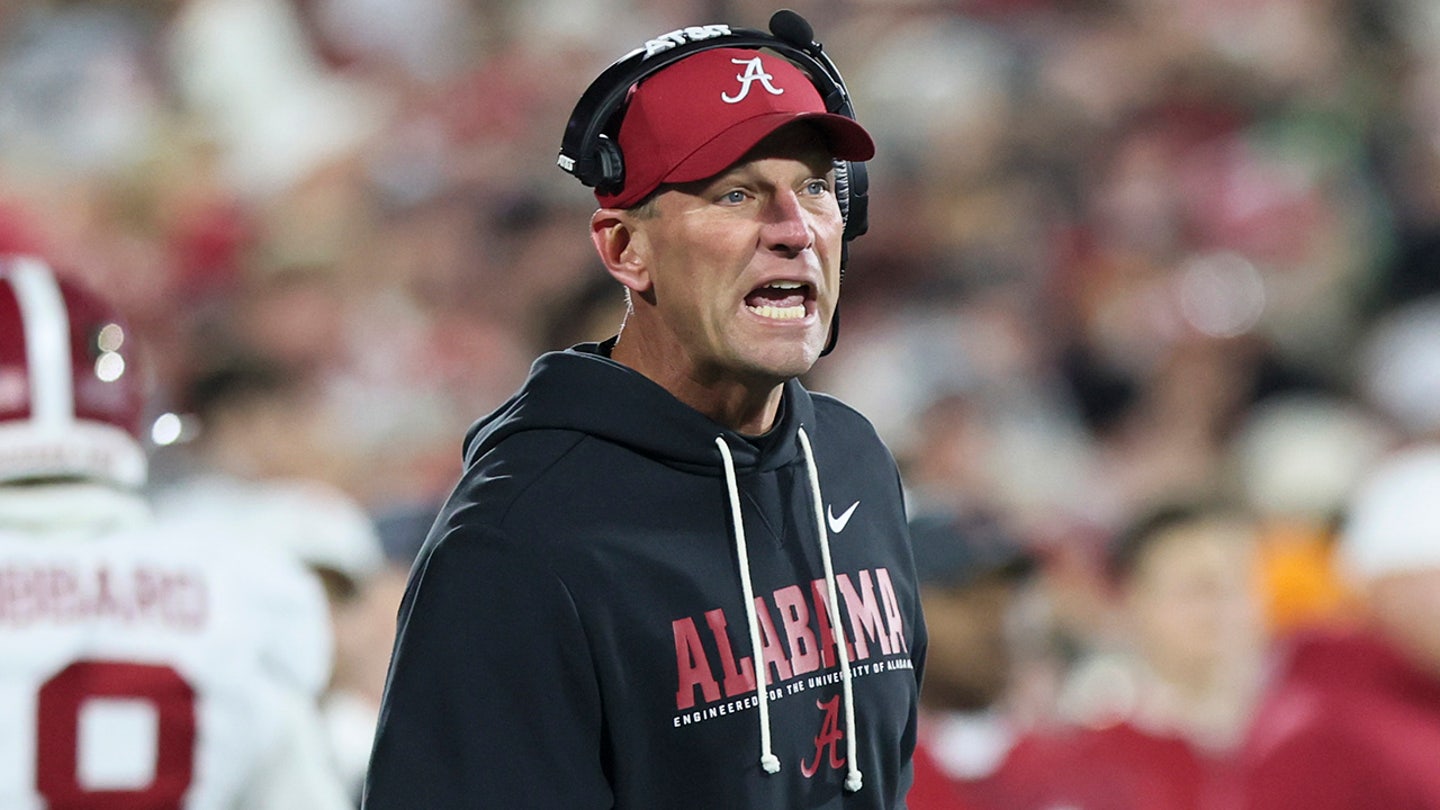 Alabama Crimson Tide head coach Kalen Deboer yells from the sideline in the first half against the Oklahoma Sooners at Gaylord Family OK Memorial Stadium on Dec. 19, 2025. (Nelson Chenault/Image Images)