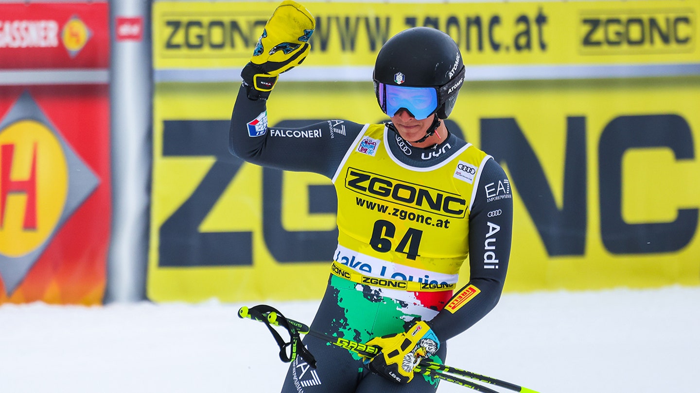 Matteo Franzoso de Italy reacts after colliding in the male descent of the Alpine Fis World Cup in Lake Louise, Alberta, Canada, on November 26, 2022. (Sergei Belski/USA Today Sports)