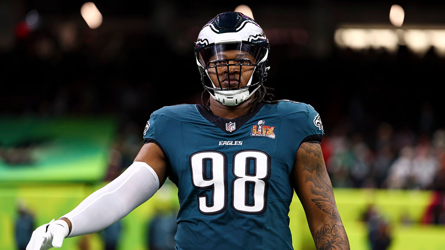 Jalen Carter of the Eagles of Philadelphia is heated before the Super Bowl against the Kansas City bosses in Caesars Superdome on February 9, 2025 in New Orleans. (Kevin Sabitus/Getty Images)