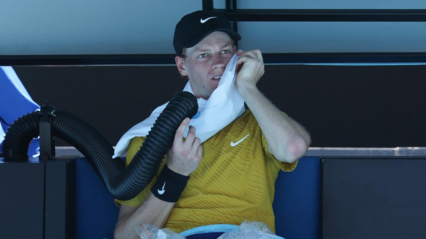 The conditions took a notable toll on Italy’s Jannik Sinner, who tried to stretch despite apparent cramps and needed the help of an air conditioning tube during the third round of men’s singles at the Australian Open.