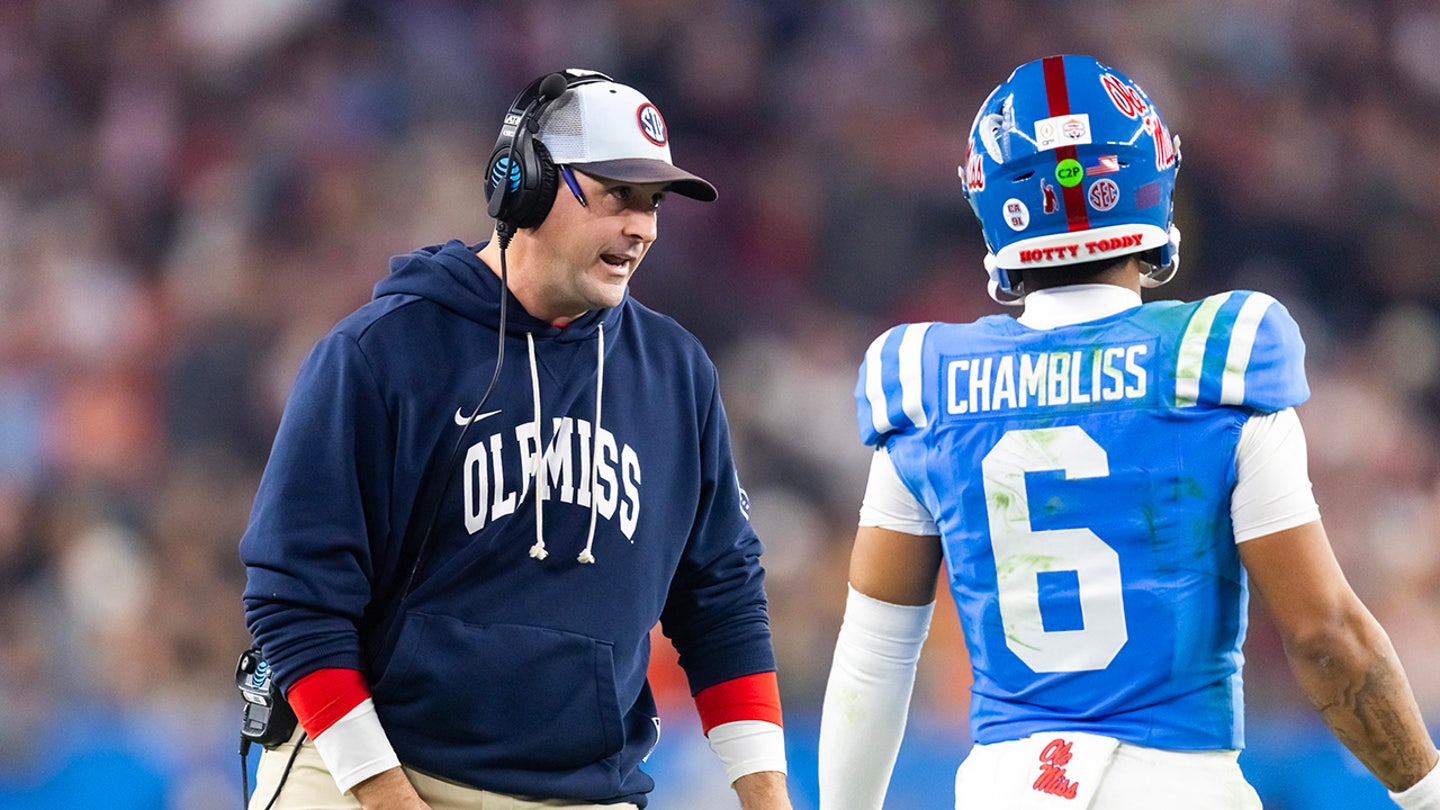 Mississippi Rebels quarterbacks coach Joe Judge with quarterback Trinidad Chambliss (6) against the Miami Hurricanes during the 2026 Fiesta Bowl and College Football Playoff semifinal game at State Farm Stadium. (Mark J. Rebilas/Imagn Images)